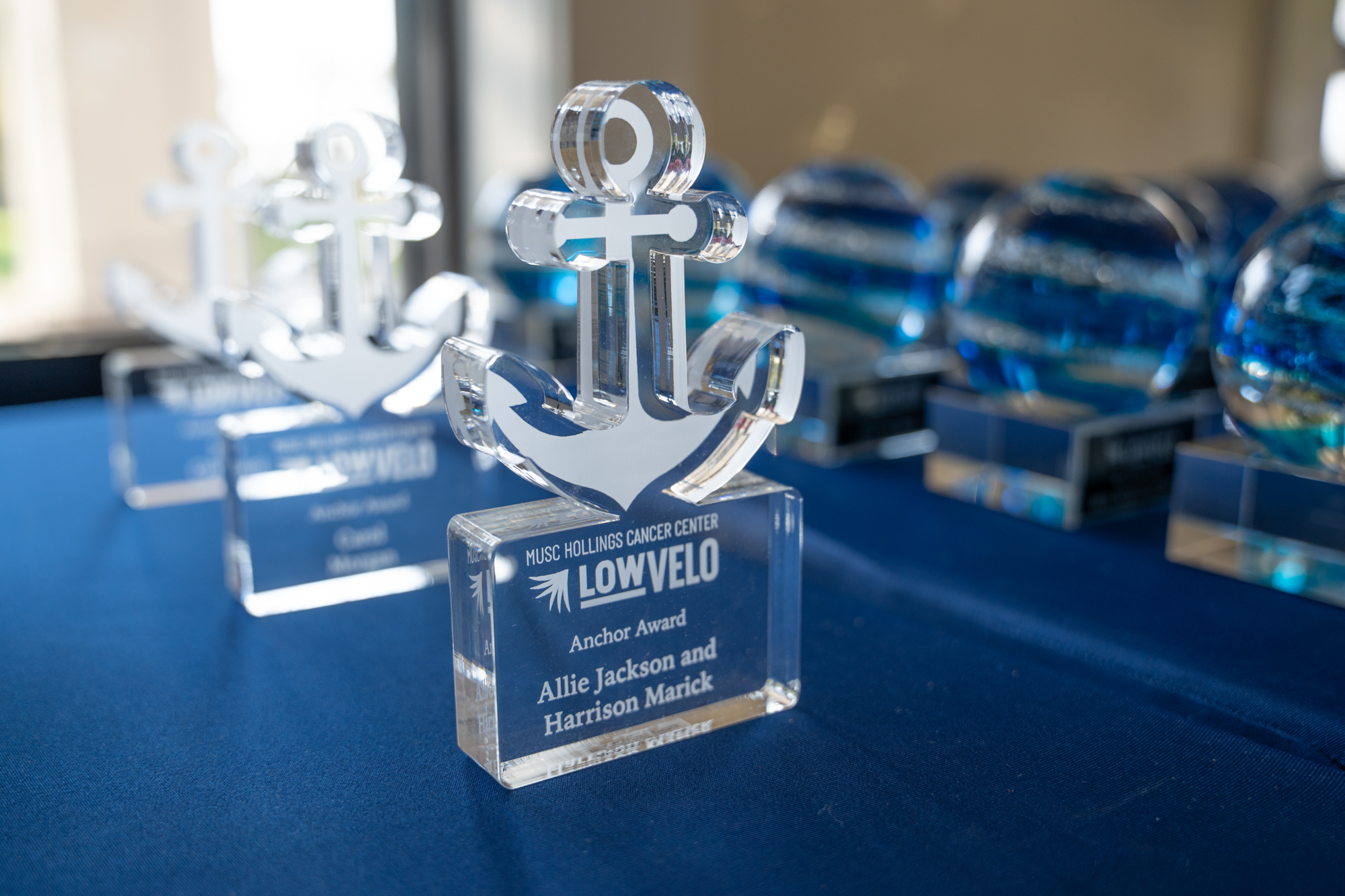 The team from the Bishop Gadsden retirement community received a Barrier Island Award, given to groups that created offsite events to raise money for the cause. Their team took part in fitness activities at their own speed and raised more than $23,000. Four volunteers were given Anchor Awards for their selfless contributions to LOWVELO25 – Jay Crawford, Carol Morgan, Harrison Mack and Allie Jackson.