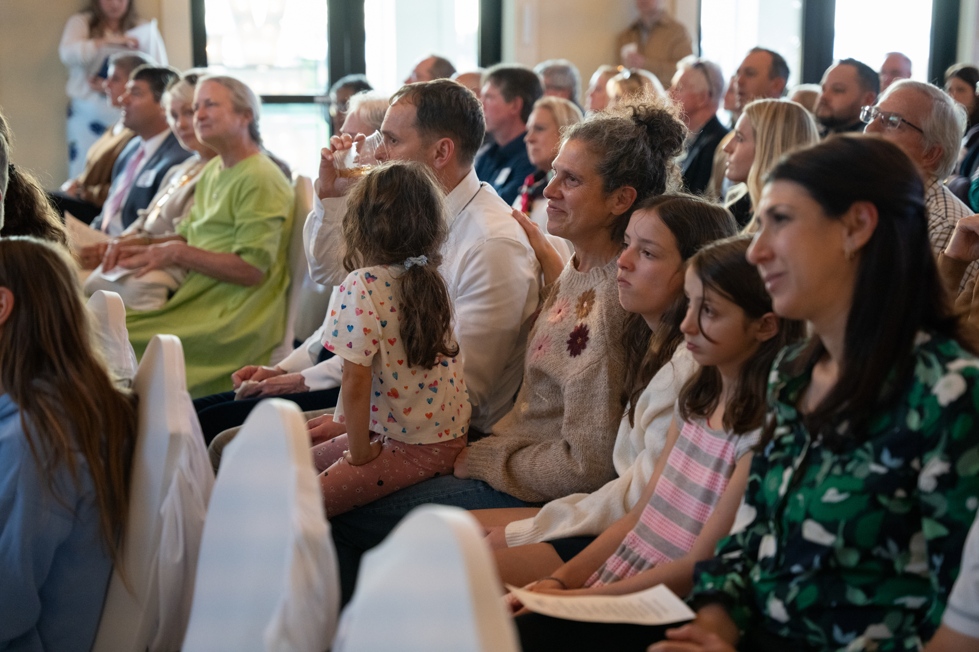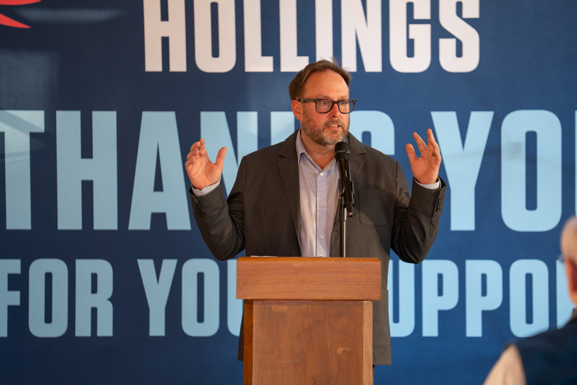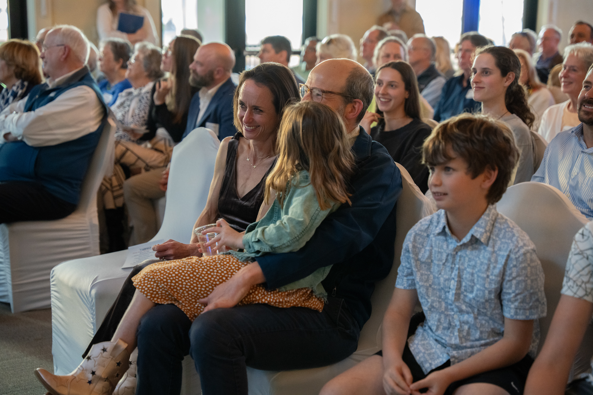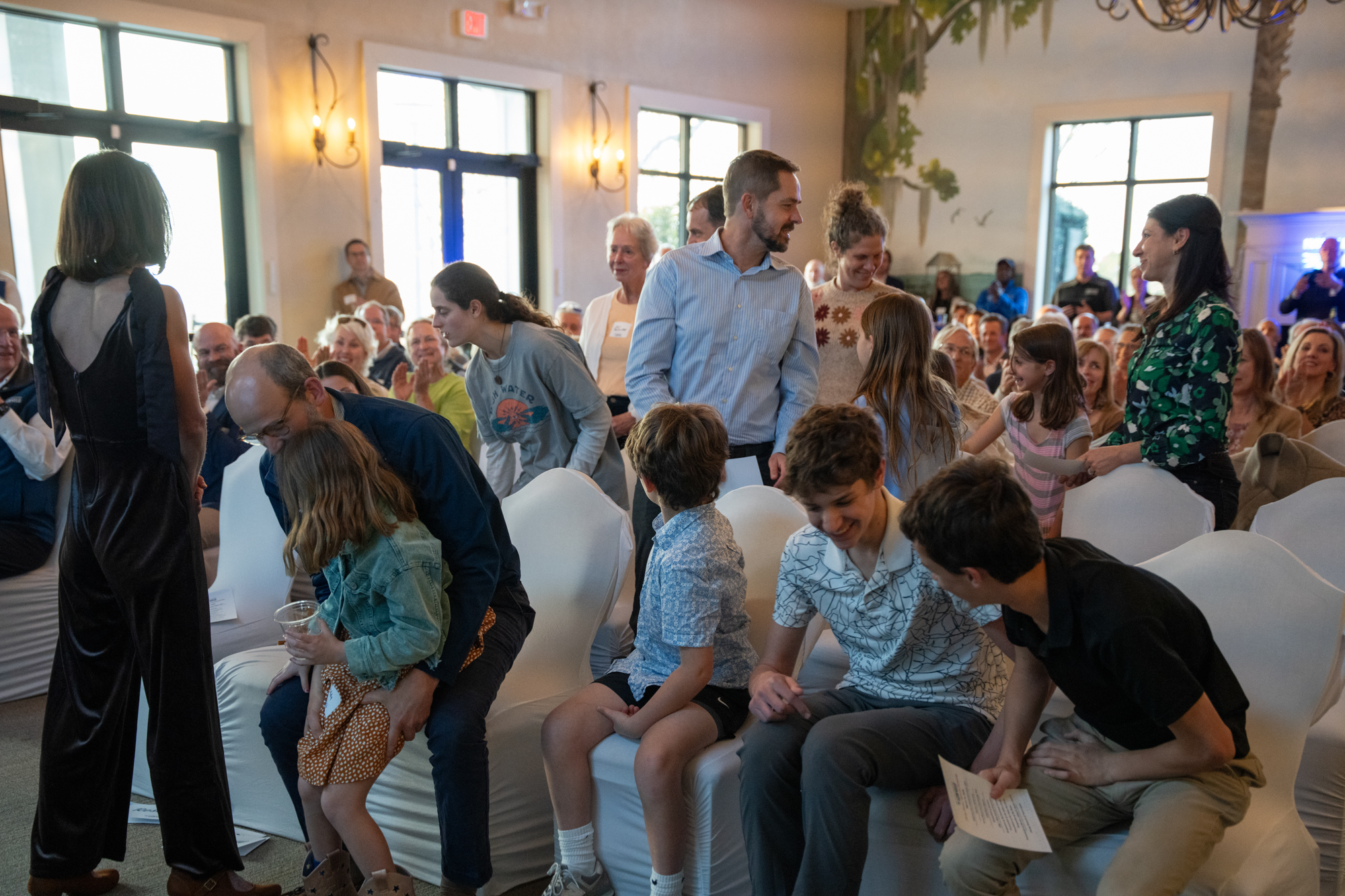 One special family took up the first three rows of seats as a video played to honor their patriarch, Marty Perlmutter. Perlmutter was one of the first patients at Hollings to receive CAR-T cell therapy, a groundbreaking immunotherapy that saw its first clinical trial at Hollings funded, in part, by LOWVELO riders.
