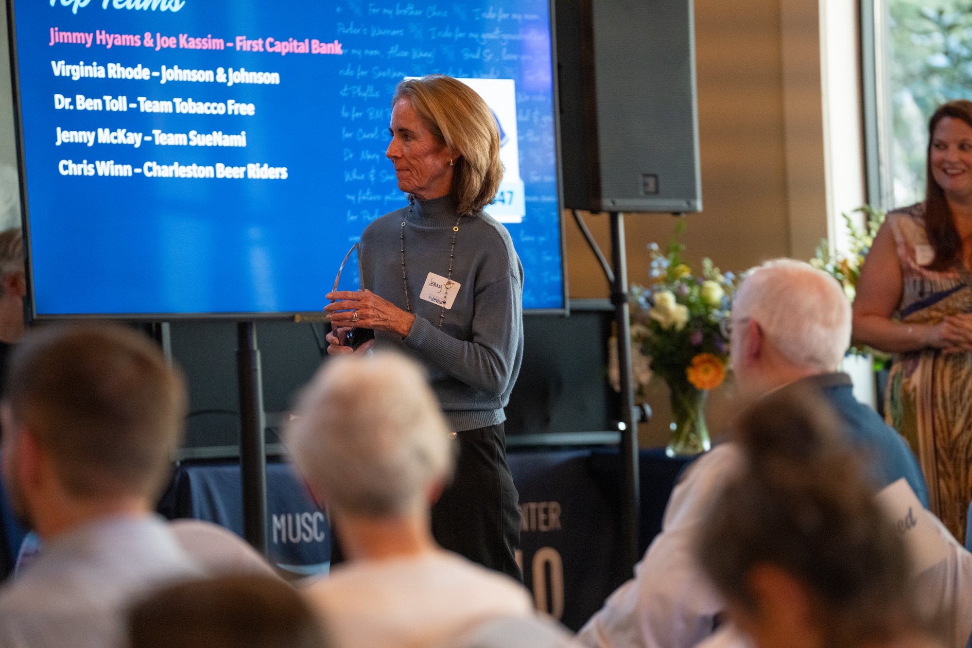 Some of the event’s top teams were also highlighted, including Johnson & Johnson, led by Fran Johnson, Jr., who took home the yellow jersey as the top overall fundraiser, single-handedly raising more than $33,000. Rounding out the top five teams were First Capital Bank – which raised $171,447, more than any other team – Team Tobacco Free, Team SueNami and Charleston Beer Riders. Team riders this year combined to raise almost a million dollars out of the total $1.13 million, highlighting the value of pedaling together.